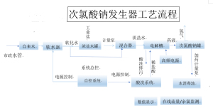 电解盐水型次氯酸钠发生器是通过电解稀盐水生成次氯酸钠溶液的装置,是由软水装置、溶盐装置、过滤装置、饱和盐水泵、软水泵、电解电极总成、整流电源、自动控制系统、存储与投加等部分组成,制成的纯净次氯酸钠溶液是一种强氧化剂,具有很强的杀菌灭藻能力,可杀灭水源的藻类、细菌等污染物,使得处理后水的菌群指标满足标准。