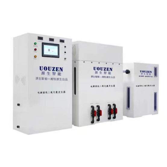 电解二氧化氯发生器。原料只需要盐,生产1克二氧化氯混合消毒剂需要1点6克盐,相比次氯酸钠发生器生产1克消毒剂需要3.5克左右盐,能耗要低很多,后期使用和维护成本也低,越来越多水厂,污水,循环水选择使用电解二氧化氯发生器设备,次氯酸钠发生器设备,可以做到1小时几百公斤,那么电解二氧化氯发生器设备,最大可以做到多少型号呢?受制于核心技术要求限制,国内厂家一般超过500克1小时的设备就不能保证质量,目前。在老挝博乔省的金三角特区水厂使用我国湖南源生智能20公斤每小时的电解二氧化氯发生器。新疆克拉玛依油田使用湖南源生智能10公斤每小时的电解二氧化氯发生器设备,是国产电解二氧化氯发生器较大的设备了。和次氯酸钠发生器设备比较,几百公斤每小时的单套电解二氧化氯发生器设备,国内还没有厂家可以生产。以湖南源生智能为代表的国内电解二氧化氯发生器专业厂家,还一直在研制中,期待能早日突破技术限制,中国制造的大型电解二氧化氯发生器设备,早日走向世界。