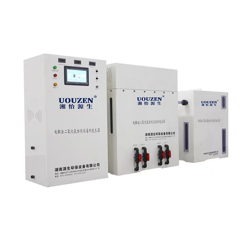 源生智能自2010年始,就开始研制电解盐消毒设备,在生产次氯酸钠发生器设备同时,也一直在研制同样原料只需要盐的另外一种电解盐消毒设备,即电解二氧化氯发生器,电解二氧化氯发生器是通过电解饱和盐水制备出二氧化氯混合消毒液,设备再也不用清洗电极,解决了很多用户使用电解盐消毒设备,担心清洗电极的问题,并且,在2011年,源生智能率先在国内研制出10公斤大型/大功率电解法二氧化氯发生器设备,打破了国内不能生产超过5公斤大型/大功率电解二氧化氯发生器的技术壁垒。源生智能10公斤电解二氧化氯发生器已经在越南后江水厂,老挝金三角水厂,克拉玛依石油等用户使用,产品一直稳定可靠。源生智能电解二氧化氯发生器产品,13年来广泛应用于水厂,污水处理厂,医院污水,循环水等应用领域,国内有:北京门头沟王平镇水厂,北京通州台湖二水厂,北京通州宋家庄地区水厂,甘肃嘉峪关水厂,贵州福泉排水集团,内蒙包头石拐区水厂,云南通威集团,江西吉安武功山集团,黑龙江齐齐哈尔医院,陕西旬阳土桥水厂,陕西榆林机场等二仟多家用户提供服务。